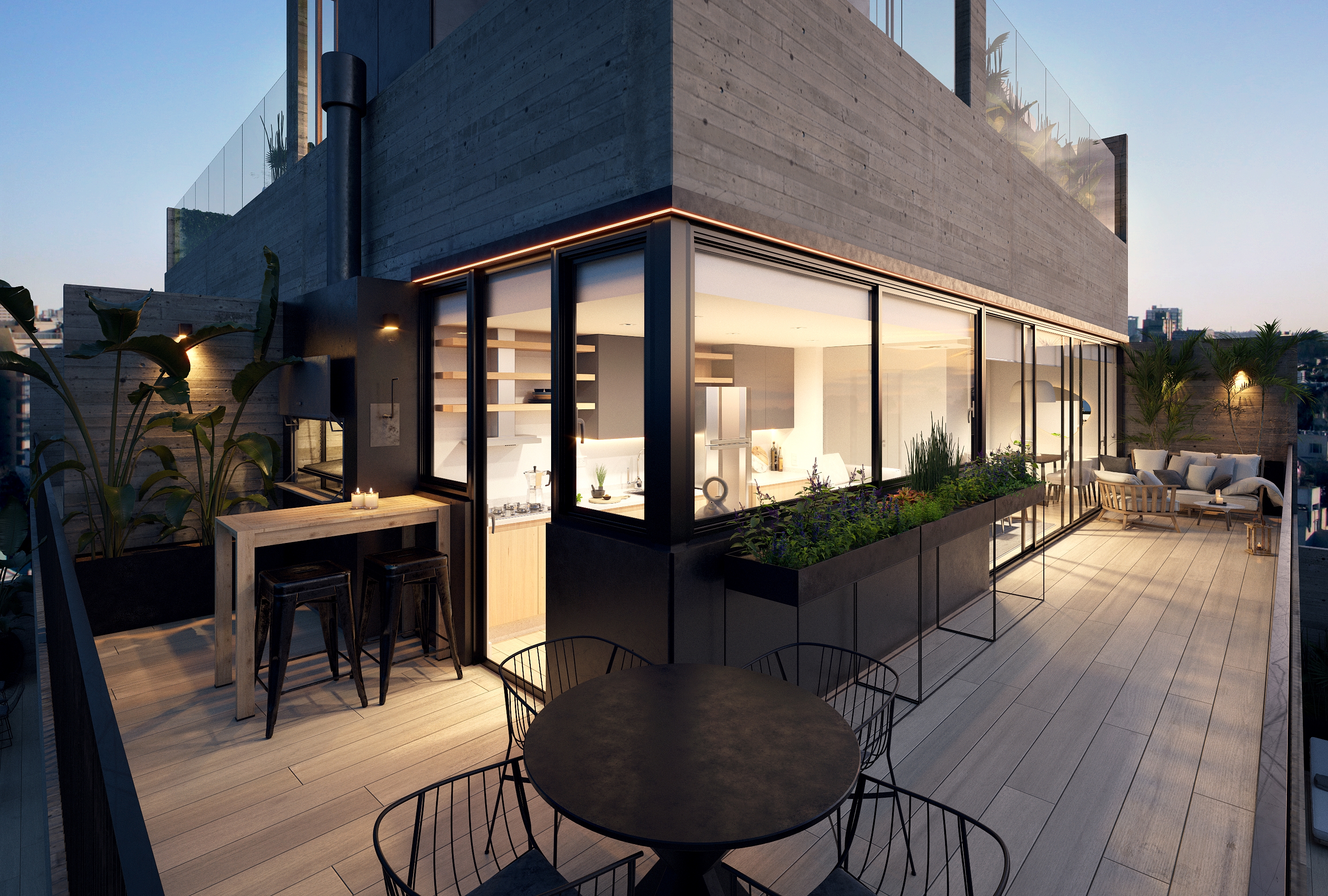 Terraza con amenities